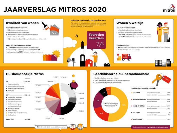 Mitros heeft haar jaarverslag over 2020 gepubliceerd. Daarin staat een overzicht van de belangrijkste activiteiten die vorig jaar werden opgepakt. Het jaar waarin corona bij iedereen voor grote onzekerheden zorgde. Toch hebben we ook mooie resultaten behaald. Zo hebben onze renovatie- en groot-onderhoudsprojecten nagenoeg geen vertraging opgelopen. Onze aannemers verdienen daarvoor een groot compliment.