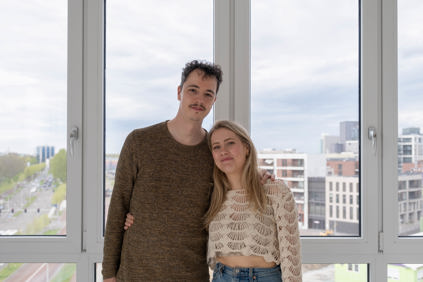 Veel blije gezichten gisteren, tijdens het eerste kijkmoment voor bewoners bij nieuwbouwcomplex De Majoor in Utrecht. Ook voor Viviënne en Falko is dit de eerste keer dat ze hun nieuwe appartement zien. Het stel woont al 4 jaar samen, in een kamer in een kerk in Utrecht. Leuk, maar ze zijn beide toe aan wat meer ruimte. Dat vinden ze nu in De Majoor. Viviënne en Falko zijn blij verrast met hun nieuwe woning. Vooral het uitzicht vinden ze geweldig.