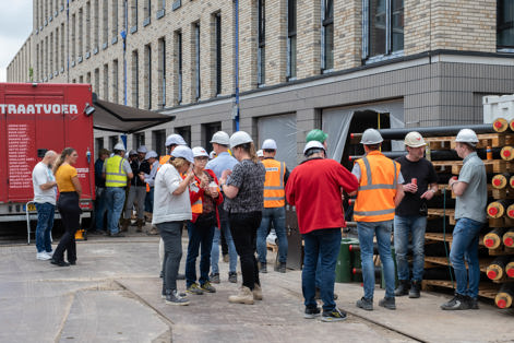 Zonder vakmensen geen nieuwbouw... Vandaag vierden we het hoogste punt van ons nieuwbouwcomplex De Hovenier aan de Oudenoord in Utrecht. Voor alle vakmensen van Plegt-Vos (en hun onderaannemers) was er patat met snacks en een koel drankje. Een mooie traditie om ze te bedanken voor al hun werk.