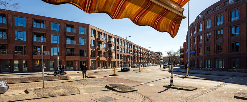 Maar we verdichten hier eigenlijk voor heel Utrecht. We hebben hier namelijk verschillende woningtypen gerealiseerd: van twee-, drie- en vierkamerappartementen tot eengezinswoningen en maisonnettes. En dan ook nog eens sociale én middenhuurwoningen."