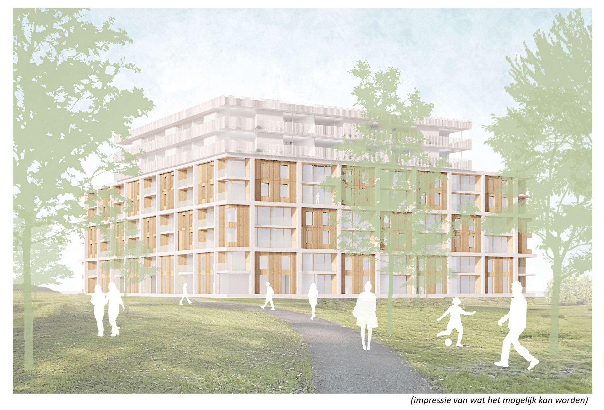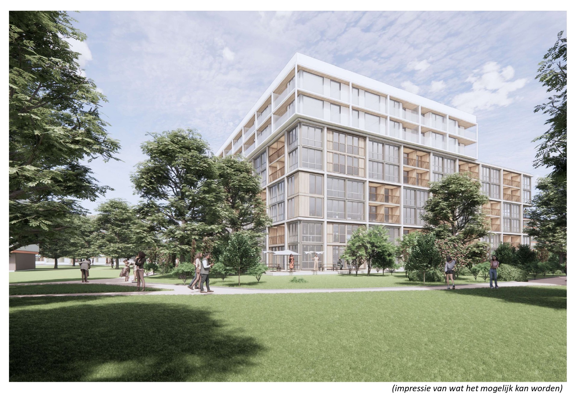 In de nieuwbouw realiseren we ongeveer 119 appartementen. Op de begane grond hebben we appartementen van ongeveer 70 m2 met een tuin grenzend aan het terras. Op de verdiepingen komen twee- en driekamerappartementen. Verder komt er een gemeenschappelijke woonkamer en is er een algemene fietsenstalling op de begane grond. Ook worden er parkeerplaatsen in de openbare ruimte gerealiseerd.