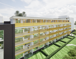 - We op deze vier flats één woonlaag toevoegen (lage gedeelte) waardoor er 32 nieuwe woningen worden toegevoegd (8 per flat).