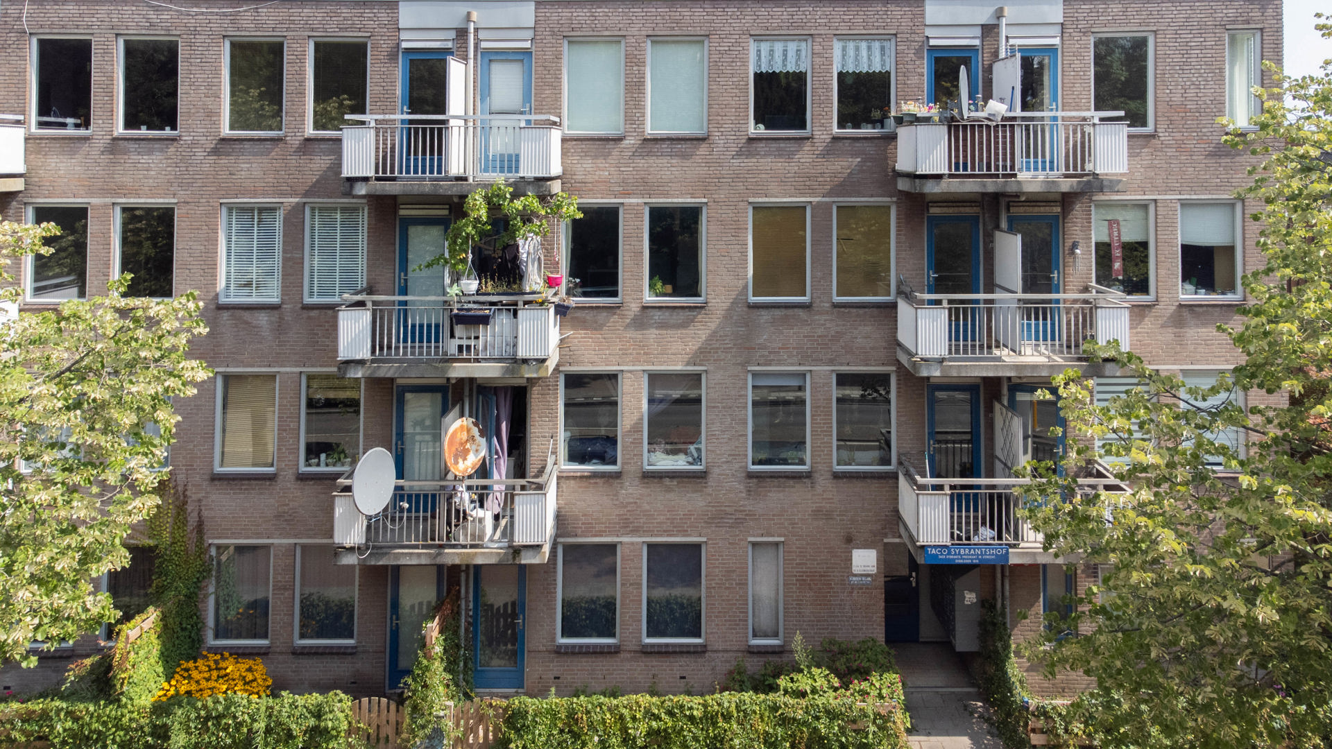 - De drie studio’s op de begane grond (aan de kant van de Amsterdamsestraatweg) transformeren we naar drie volwaardige 2-kamerwoningen. Hiervoor verplaatsen we een aantal bergingen. Deze nieuwe woningen krijgen uitzicht op de binnentuin.