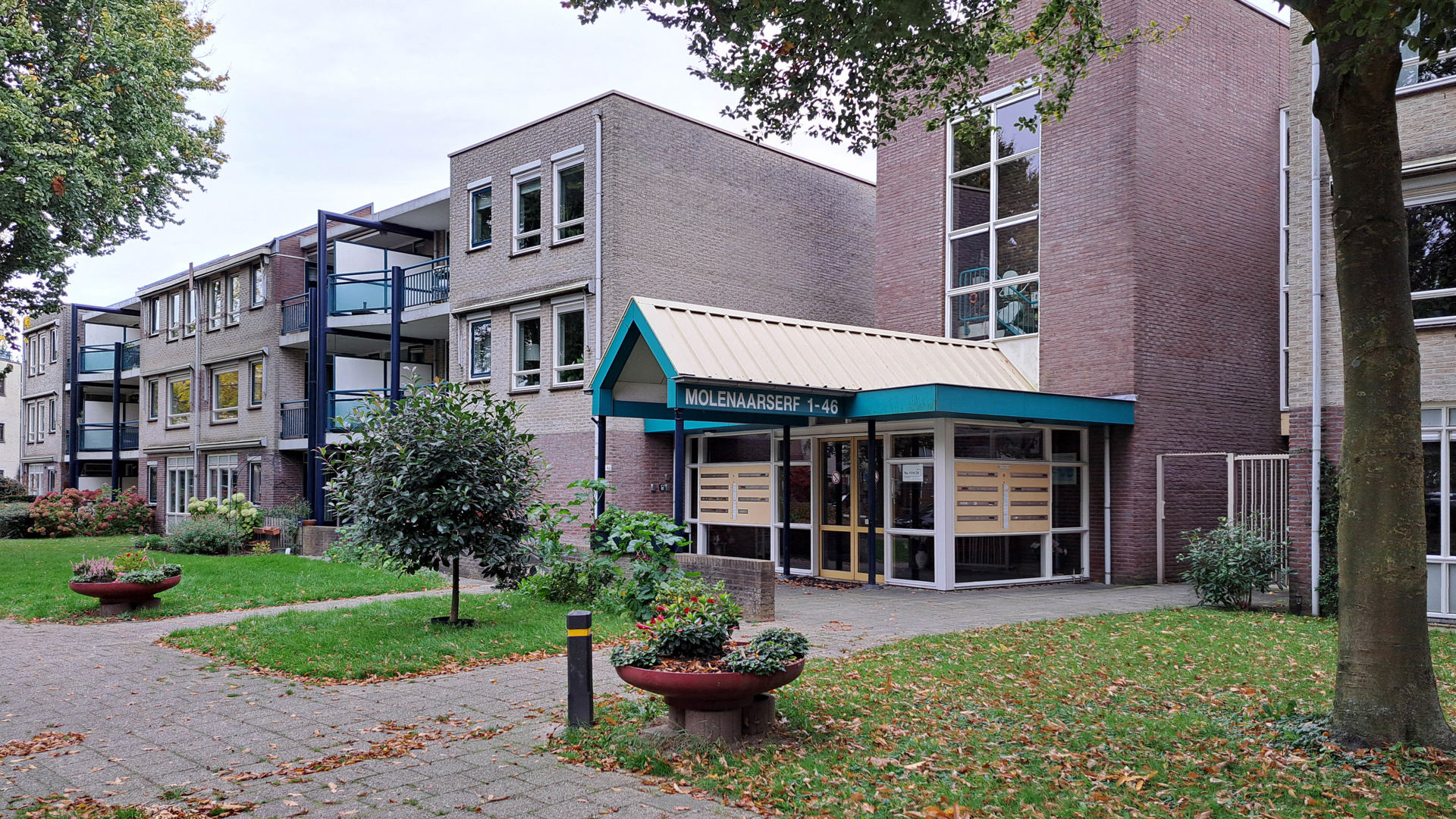 Dit seniorencomplex uit 1996 ligt in de Wijk de Erven. Het Oude Dorp ligt op zo’n 800 meter loopafstand. Station en winkelcentrum Het Rond liggen op 1 km afstand van het Molenaarserf. De adressen zijn Molenaarserf 1 tot en met 46.